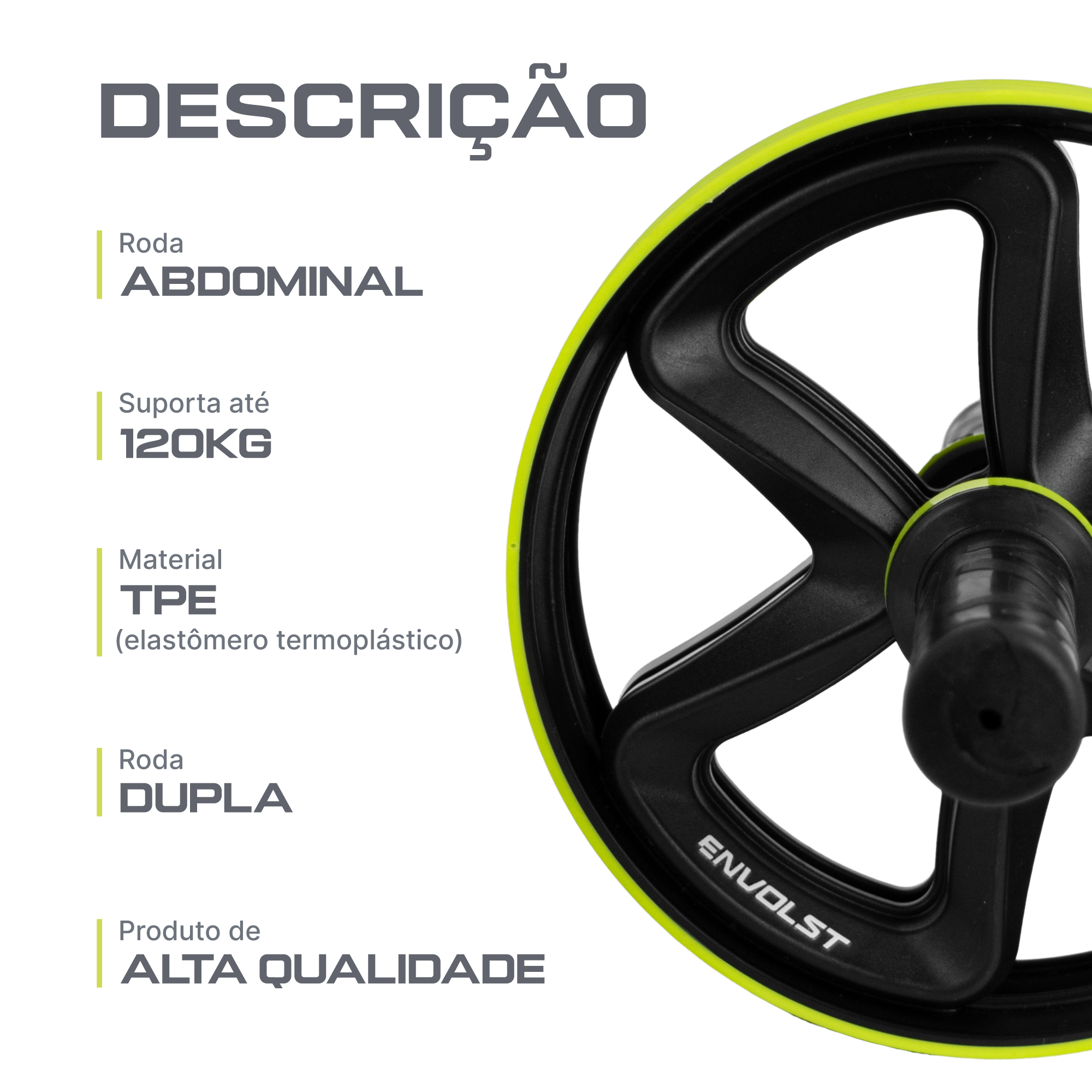Ferramenta compacta para fortalecimento do core com controle de movimento. A base com duas rodas amplia a estabilidade e facilita a técnica. Revestimento em TPE aderente protege o piso, enquanto barra de aço e corpo em PP suportam até 120 kg. Manoplas ergonômicas emborrachadas asseguram pegada firme para uso em casa, estúdios ou academias.