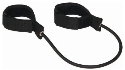 Elástico de tração com velcro. Projetado para treinamento de força, resistência e equilíbrio. Composto de elástico de resistência, com 30cm de comprimento, preso, em ambas as pontas, a velcros ajustáveis. Pode ser utilizado em diversos exercícios para membros inferiores e superiores.