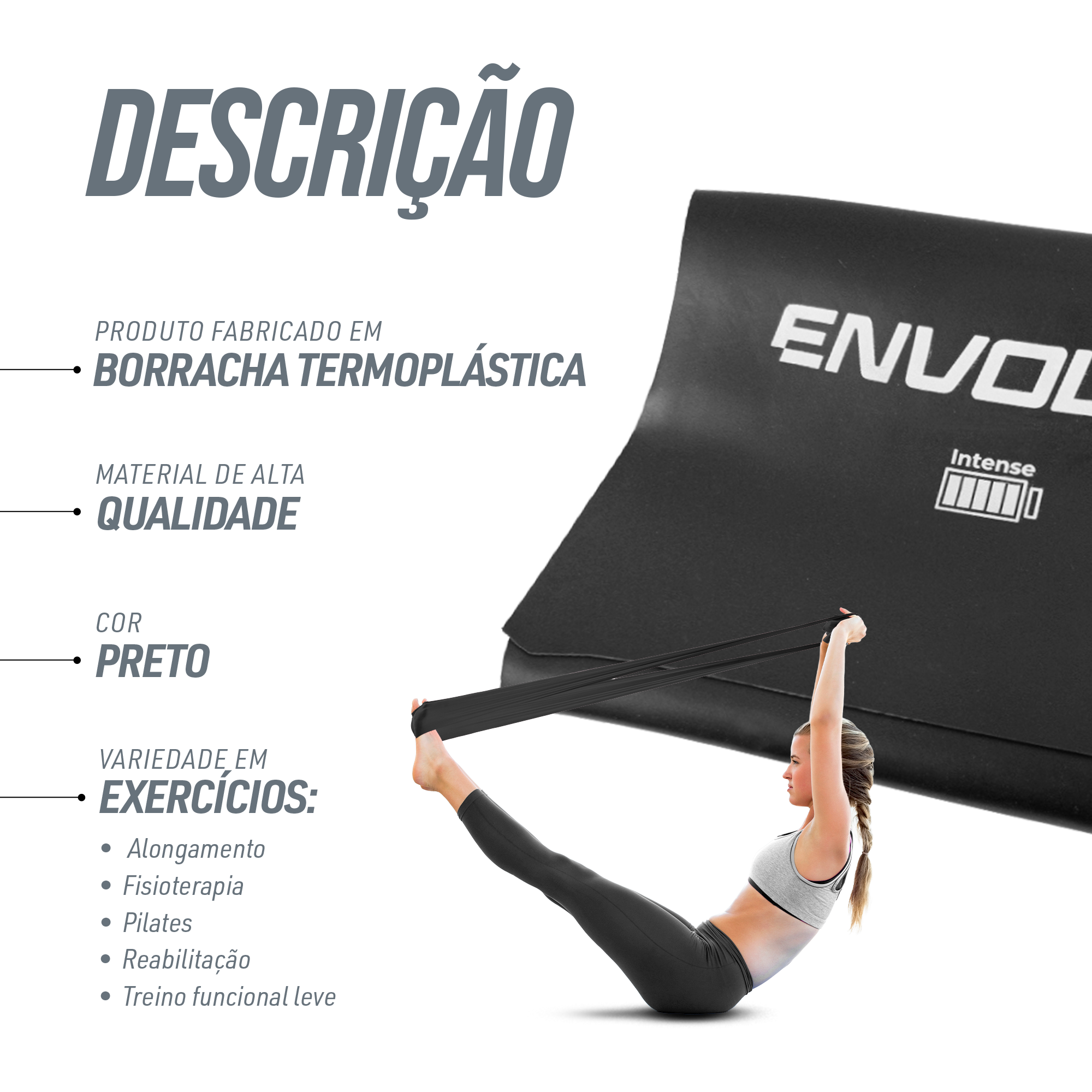 A Faixa Elástica 1,50 m Envolst Extra‑forte foi pensada para quem busca um acessório simples, eficiente e confortável para treinar todo o corpo. O formato plano, não circular, dá mais opções de pegada e ajuste do comprimento, o que facilita controlar a resistência apenas mudando a amplitude do movimento ou a distância das mãos. Assim, você adapta o exercício à sua necessidade, seja para fortalecer, alongar ou melhorar a mobilidade. O material é TPE, um elastômero termoplástico conhecido pela alta elasticidade e pelo toque suave na pele. Por ser livre de látex, reduz o risco de reações alérgicas e mantém a sensação macia durante o uso. A largura generosa apoia melhor pés e mãos, distribuindo a pressão e aumentando o conforto em repetições longas, posturas de Pilates, Yoga ou séries de aquecimento antes de outras atividades. Como usar no dia a dia? Pense em movimentos básicos e funcionais: remadas, elevações, abduções, rotações externas, extensão de tríceps, alongamentos de cadeia posterior e exercícios de mobilidade de ombros e quadris. A faixa pode ser segurada com as mãos, presa sob os pés ou ancorada em um ponto fixo seguro. A resistência é progressiva conforme o alongamento do elástico, o que ajuda a manter o controle do gesto e a boa técnica em cada repetição. Na prática, a faixa é leve e dobrável, fácil de levar na mochila e guardar em qualquer gaveta. A limpeza é simples: pano úmido e, se necessário, sabão neutro. Para maior durabilidade, seque à sombra, evite superfícies ásperas e não exceda o dobro do comprimento ao esticar. Essas pequenas atenções preservam a elasticidade e a segurança do equipamento por mais tempo. Especificações que importam para escolher: 1,50 m de comprimento, 15 cm de largura, 0,65 mm de espessura, cerca de 138 g de peso e cor preta com identificação Intense (extra‑forte). É a combinação ideal para rotinas versáteis, desde a ativação muscular até sessões de alongamento e mobilidade, em casa, estúdios, academias ou clínicas, sempre com orientação profissional quando necessário. Se você procura uma faixa elástica confortável, versátil e fácil de usar, essa é uma excelente escolha para treinar com qualidade e constância. Explore as possibilidades e evolua no seu ritmo. Garanta a sua na Pista e Campo e comece hoje mesmo.