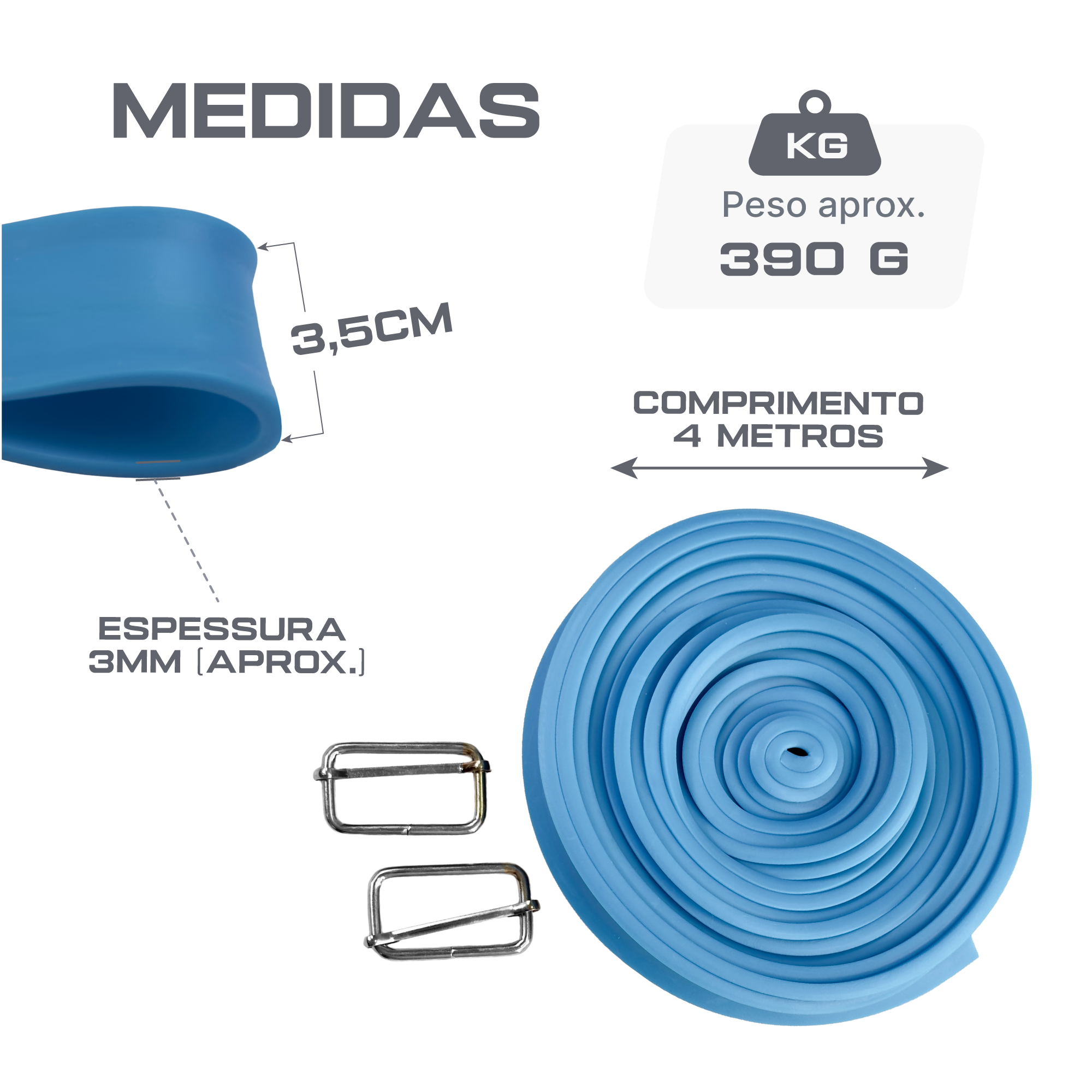 Se a ideia é potencializar arranques, trabalhar aceleração e construir potência com segurança, esta cinta elástica em rolo entrega o que importa. São 4 metros de fita em elastômero resistente, largura de 3,5 cm e espessura aproximada de 3 mm, com resposta elástica consistente e retorno suave. O conjunto inclui fivelas metálicas com pino central, criando um ajuste confiável na cintura ou formando alças firmes para diferentes exercícios de tração. Com ela você estrutura sessões de preparação física completas: sprints com resistência, corridas assistidas por parceiro, mudanças de direção com sobrecarga elástica, saídas de bloco mais fortes e trabalhos de core e cadeia posterior. A resistência é progressiva, então quanto maior o deslocamento, maior a carga de tração, simples de controlar e fácil de replicar entre séries. O formato em rolo contínuo amplia as possibilidades. Use o comprimento integral quando precisar de mais amplitude ou corte segmentos para montar faixas sob medida, adequadas ao espaço de treino e aos exercícios planejados. Em academias, boxes de treinamento funcional e campos, a mesma fita atende aquecimentos, educativos de corrida e estímulos de potência, sem necessidade de acessórios complexos. As fivelas metálicas com pino central facilitam o ajuste rápido e estável. Passe a fita pela fivela para formar um cinto ao redor da cintura ou uma alça para ancoragem. Assim, o equipamento funciona tanto em treinos em dupla quanto preso a um ponto fixo, oferecendo versatilidade para técnicos, atletas e equipes multidisciplinares. Detalhes que fazem diferença no dia a dia: o elastômero oferece boa durabilidade para uso intenso, o conjunto pesa cerca de 390 g, é fácil de transportar e ocupar pouco espaço no material de campo. Para manutenção, basta limpar com pano úmido e sabão neutro, guardar enrolado em local seco e longe do sol direto. Evite superfícies ásperas ou cortantes e utilize sempre ancoragens estáveis. Resumo prático: um rolo de cinta elástica robusta, capaz de qualificar treinos de velocidade, força específica e coordenação, com ajuste seguro por fivela e liberdade para personalizar o comprimento conforme a necessidade. Pronto para elevar a eficiência do seu treinamento de tração? Adicione ao carrinho no site Pista e Campo e receba um equipamento versátil, confiável e fácil de integrar à rotina.