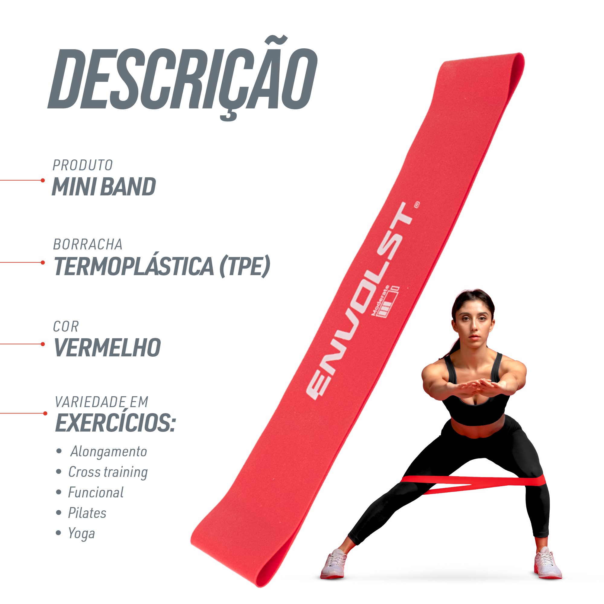 A Mini Band da Envolst é aquela faixa elástica circular que transforma exercícios simples em movimentos eficientes. Ela entrega resistência progressiva para você sentir o trabalho certo, no tempo certo, sem precisar de máquinas. É prática para aquecer, ativar grupos musculares e complementar séries de força, ajudando a melhorar estabilidade, coordenação e controle do movimento. O material em TPE foi escolhido para oferecer elasticidade consistente e retorno suave, o que facilita encontrar a tensão ideal e manter a técnica. A superfície tem toque confortável e boa aderência, favorecendo a execução sem escorregar. A largura da faixa ajuda a distribuir a pressão na pele e reduzir a tendência de enrolar durante agachamentos, abduções e deslocamentos laterais. Na rotina, ela cabe em muitos treinos. Serve para ativar glúteos e quadris antes de correr, para reforçar estabilidade de joelhos em agachamentos e passadas, e para exercícios de core, ombros e costas com variações simples de posicionamento. Dá para usar com ponte de quadril, abdução em pé, avanço lateral, elevação pélvica, caminhadas com elástico, remadas em isometria e também em movimentos de membros superiores como rotação externa e elevação frontal. Outra vantagem é a praticidade. A faixa é leve, não ocupa espaço e acompanha você no estúdio, na academia, em casa ou em viagens. Vai bem em sessões rápidas, pausas ativas no trabalho e circuitos de treinamento funcional. Por ser um acessório silencioso e versátil, é fácil encaixar no dia a dia sem depender de aparelhos grandes. Para conservar, limpe com pano úmido e sabão neutro, seque à sombra e guarde em local arejado, longe do sol direto e de superfícies abrasivas. Assim, a elasticidade se mantém por mais tempo e a experiência de uso continua confortável e previsível. Se você busca um acessório simples, portátil e eficiente para ativar musculatura e dar mais qualidade aos movimentos, esta mini band é a escolha certa. Veja as fotos, confira as informações técnicas e finalize sua compra agora no site Pista e Campo.