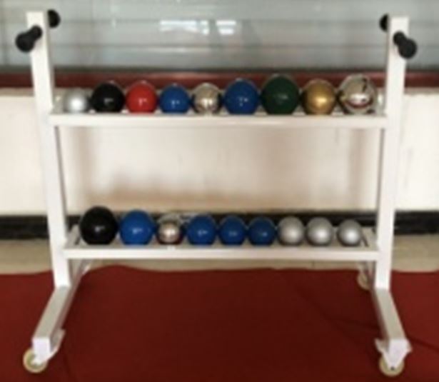 Carrinho para transporte de pesos de atletismo. Feito de aço tubular de alta resistência, rodas giratórias. Pintura a pó, resistente à corrosão, impacto, ação química, etc. Transporta até 20 pesos.