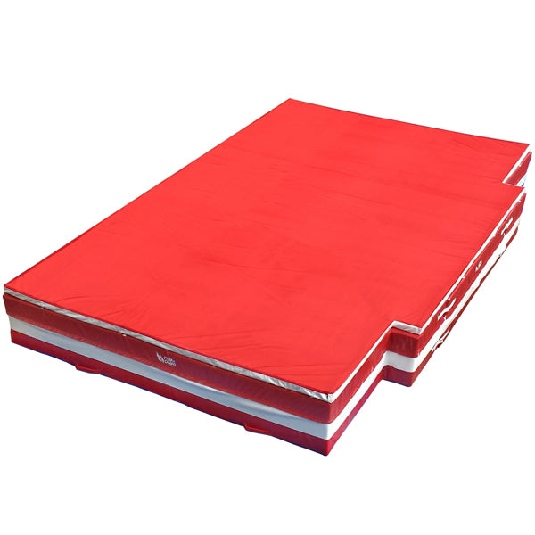 Área de queda (colchão) de atletismo para salto em altura oficial. Medidas totais: 6,00 x 4,00 x 0,70 m. Construção: três módulos principais e uma cobertura superior (top pad). Módulos feitos de espuma especial com bolsões de ar. Cobertura superior (top pad) macia, para maior conforto na queda, com cintas de fixação ao colchão de aço inoxidável. Revestimento dos módulos e da cobertura superior resistente aos pregos de sapatilhas com proteção UVA/UVB. Alças de transporte. Avanço em um dos lados do colchão, abrindo espaço para os postes (saltômetros). Certificado pela WA-IAAF. Trata-se do primeiro produto da América Latina certificado pela IAAF, tecnologia e produção 100% nacional. Pode ser personalizado em qualquer cor e estampa desejada.