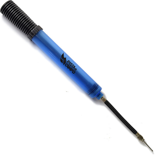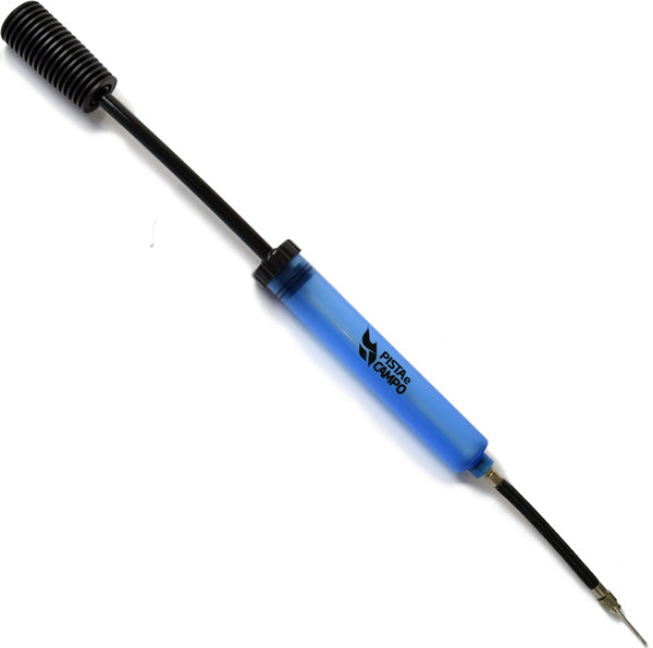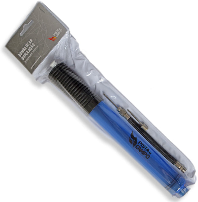 Bomba de mão dupla-ação para encher bola Pista e Campo. Possui sistema Double Action que facilita inflar nos dois sentidos (ao empurrar e puxar), tamanho de 25 cm e pesa 150 gramas. Ideal para inflar bolas de futebol, vôlei, basquete, handebol. Acompanha 01 bomba, 01 prolongador e 02 agulhas rosqueáveis de metal.