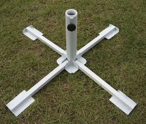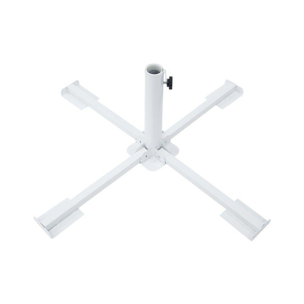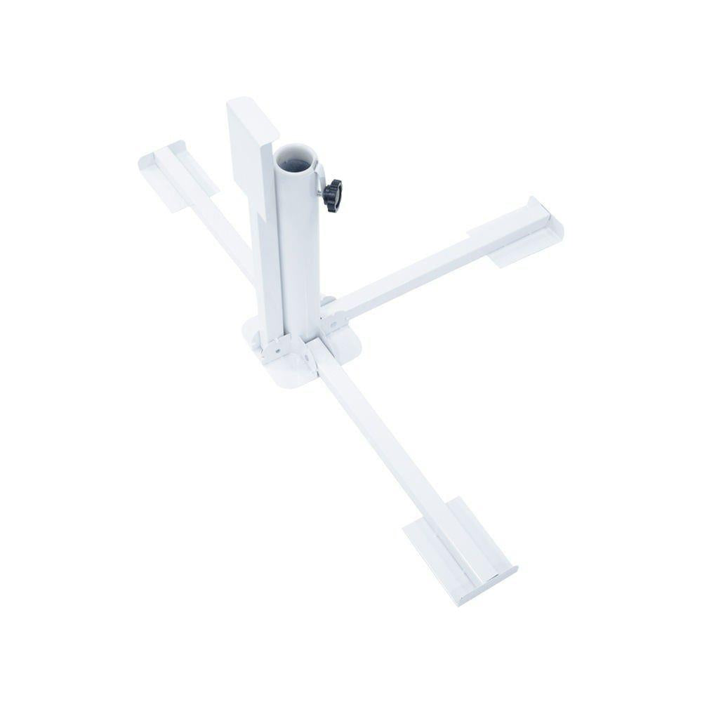 Base de Aço Dobrável Para Guarda-Sol e Ombrelone - Nautika. A NAUTIKA traz a você este suporte dobrável que serve como base para ombrelones centrais. Encaixa-se perfeitamente nos modelos Paloma, Milano (250 e 270), Tilt, Austin e outros compatíveis como âncora lajota quadrada de concreto ou ainda Base para Ombrelone Concreto 2 Pedras 25Kg, peso com 4 Peças para base ombrelone e Garden. O produto possui ajuste de pressão lateral e plástico regulador de diâmetro, de modo a realizar um melhor ajuste ao seu ombrelone e, assim, regular o melhor ângulo para projeção de ombra. Não pode ser usada com a mesa Surya. ESPECIFICAÇÕES: Material: Aço Pintado Esmaltado. Cor: Branco (única). Altura: 34 cm. Largura: 87 cm. Comprimento: 87 cm. Diâmetro: 4,2 cm. Peso: 2,6 kg