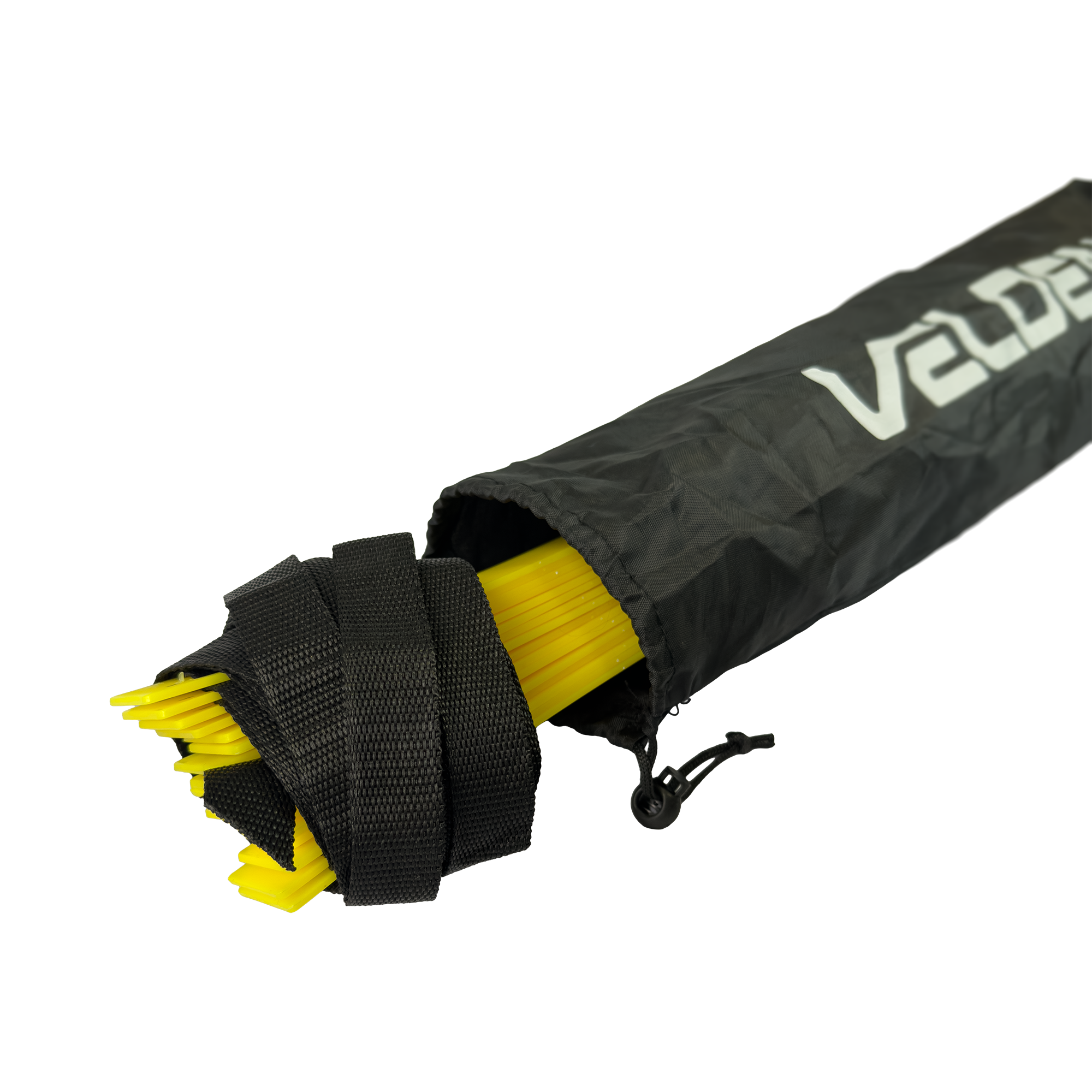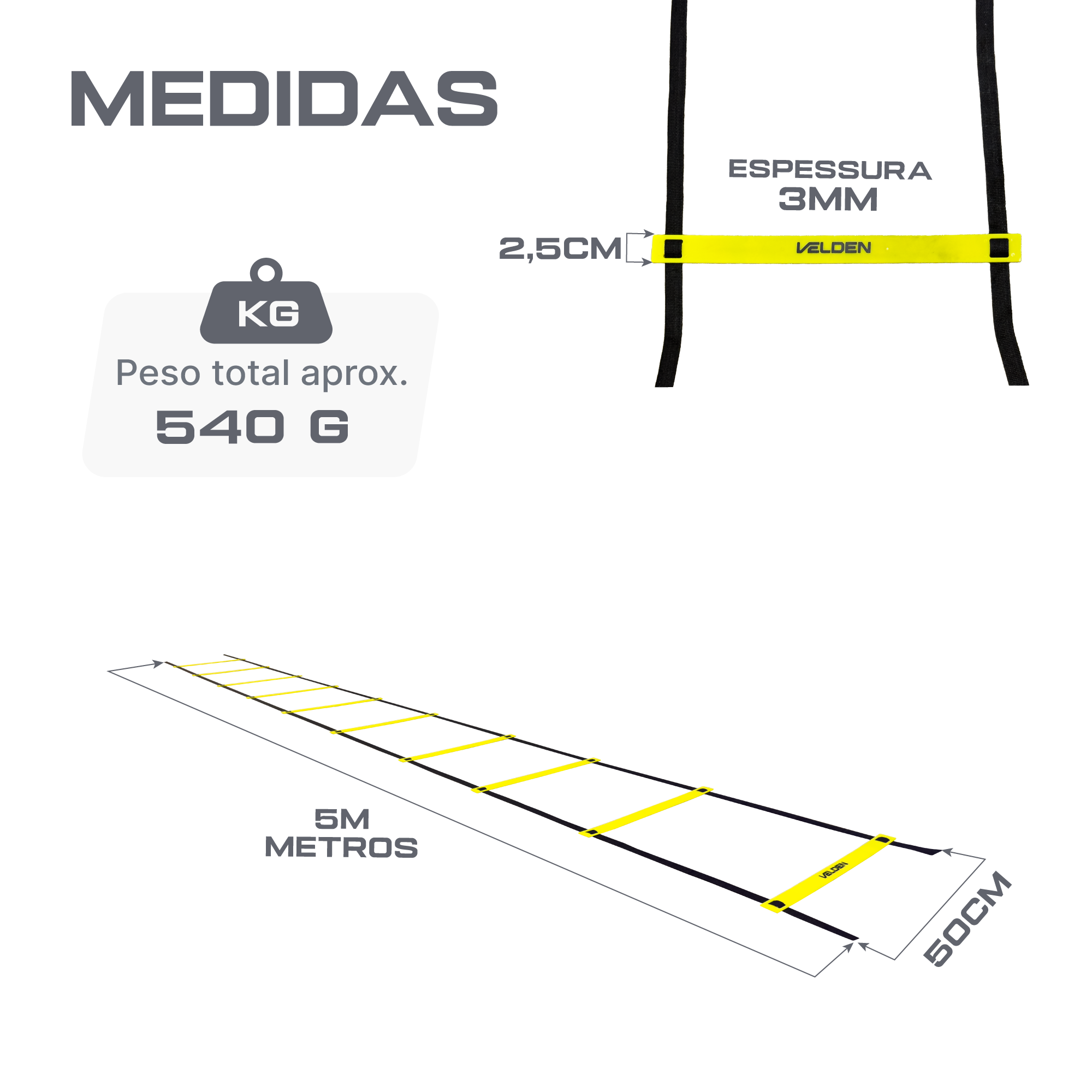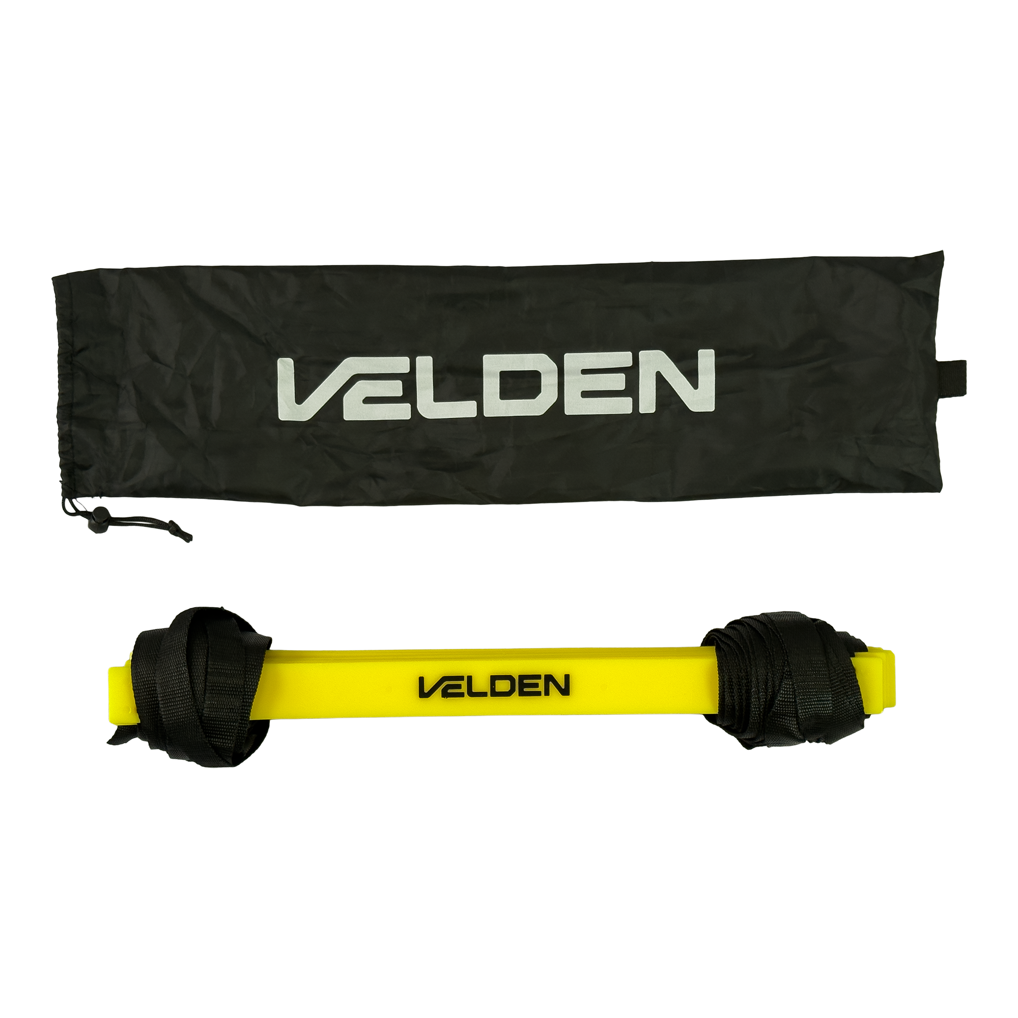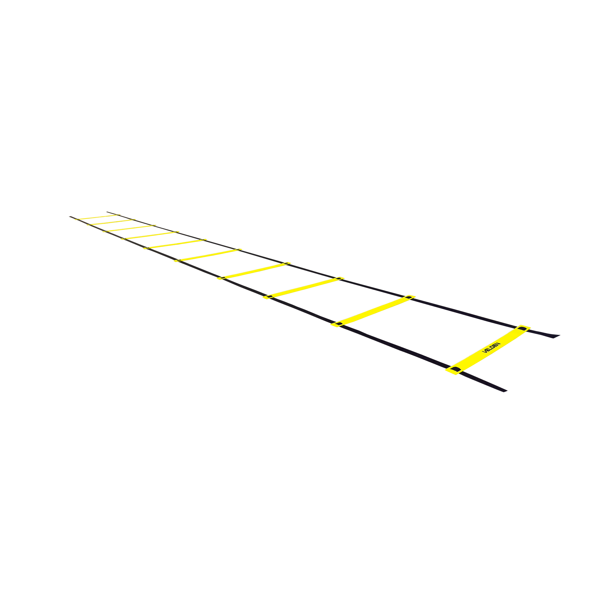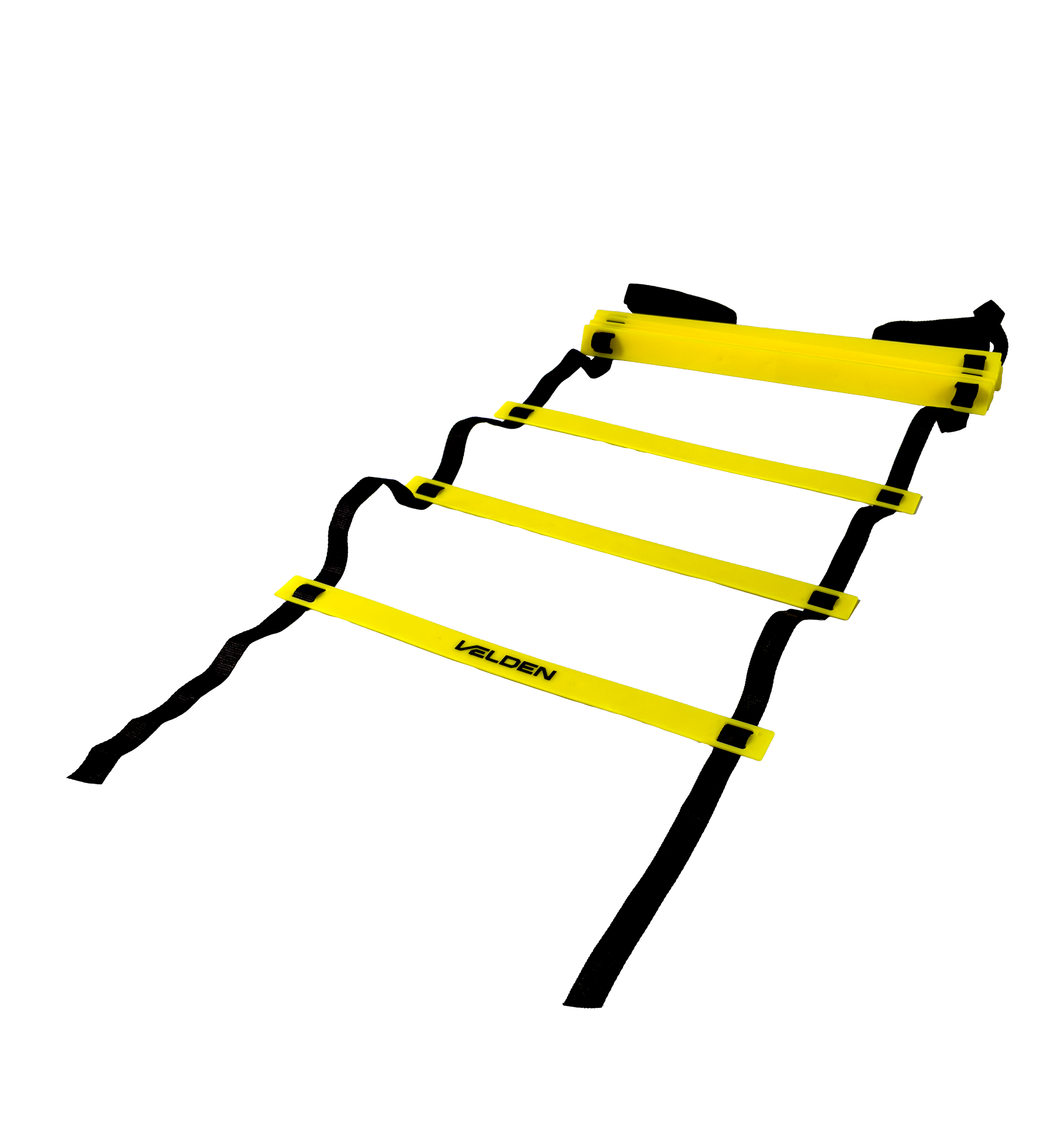 Escada de agilidade para treinos de velocidade, coordenação e mudança de direção. Degraus em PVC ajustáveis sobre fitas de nylon de alta resistência, com alta visibilidade amarela. Leve e dobrável, acompanha bolsa para transporte. Engate rápido nas pontas para conectar outras escadas e ampliar o circuito.