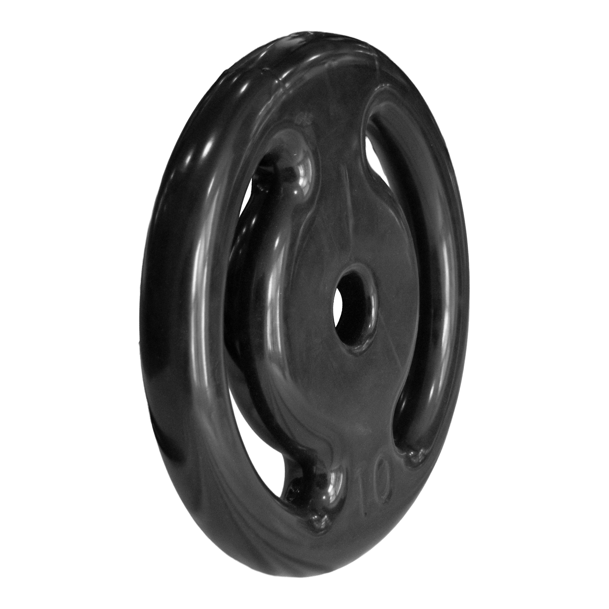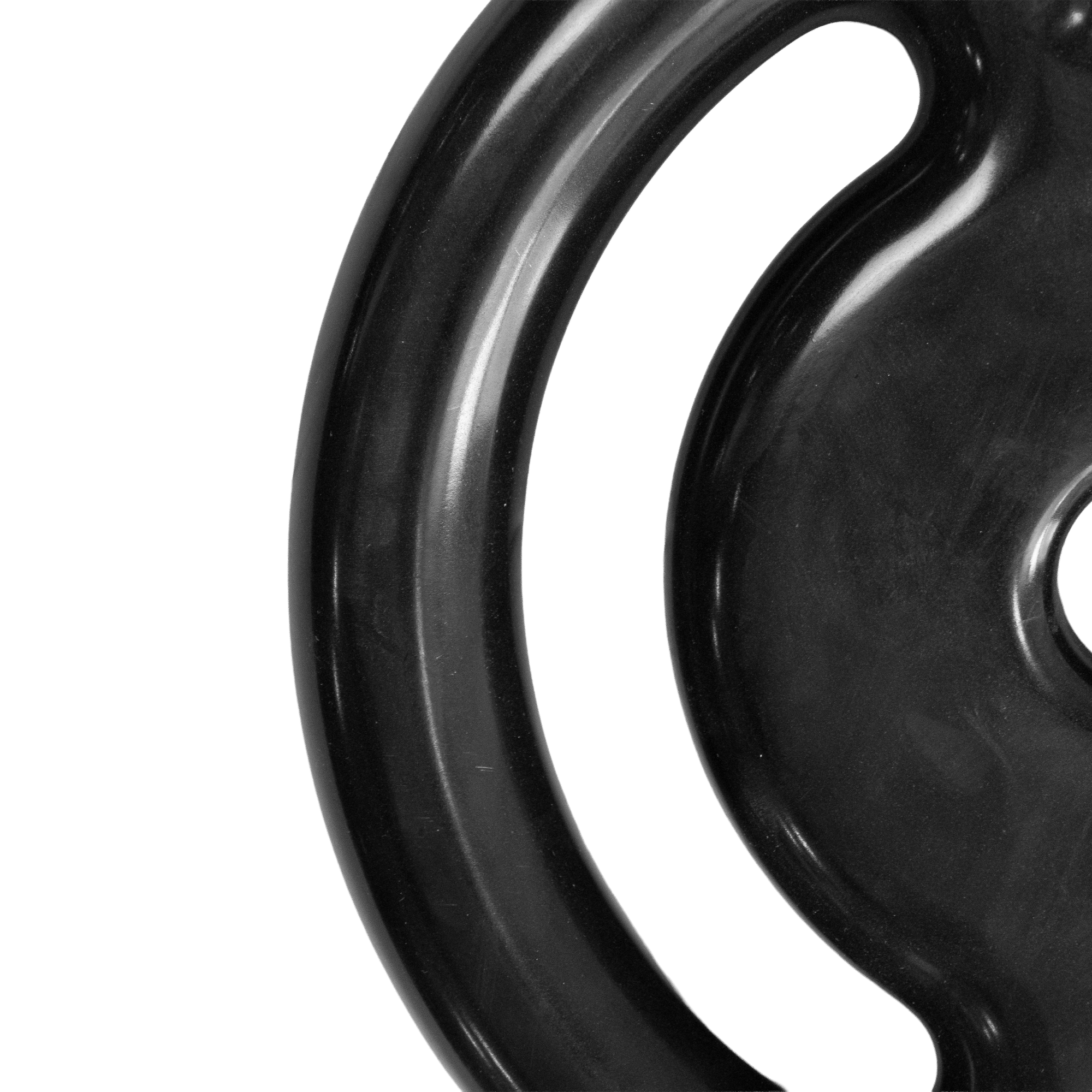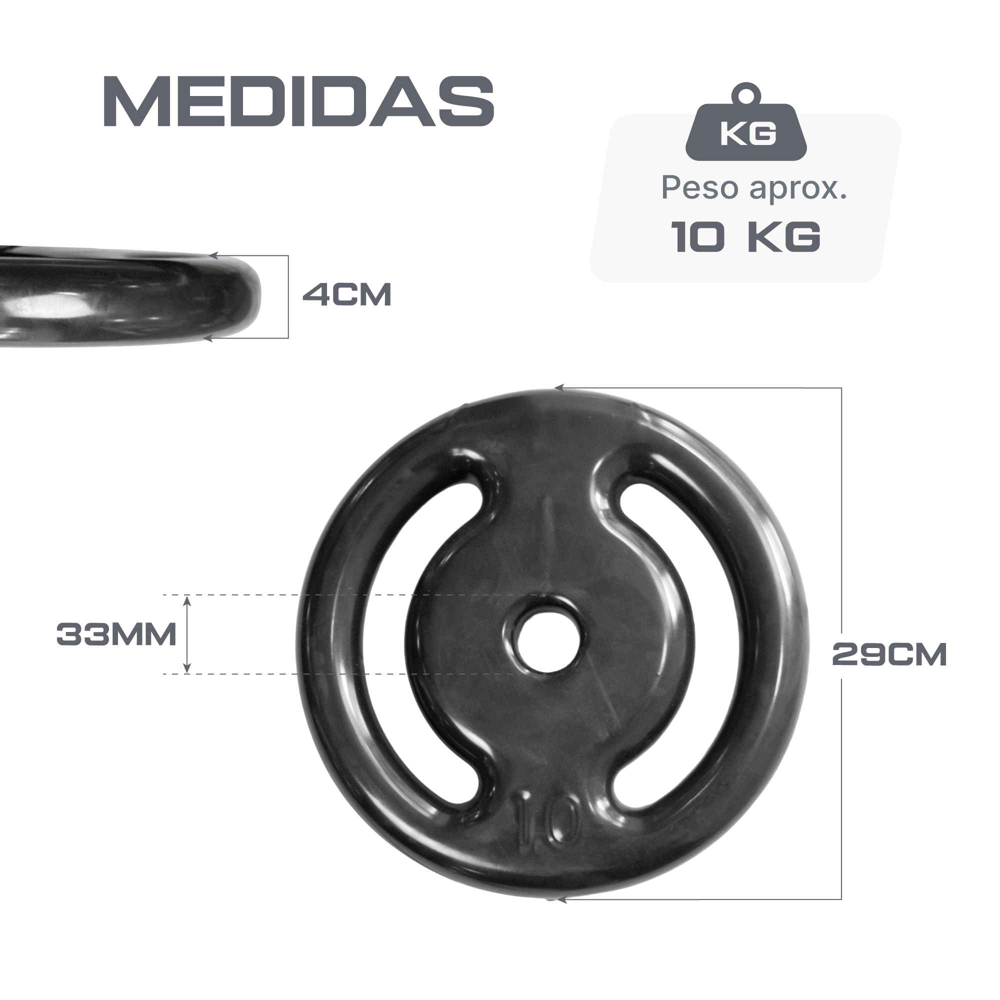 Anilha vazada emborrachada para treinos de força e funcional. Estrutura de ferro fundido com revestimento em borracha que protege o piso e reduz ruído. Pegadas laterais facilitam o transporte, a troca nas barras e o uso em exercícios livres. Furação central 33 mm compatível com barras e halteres nacionais.