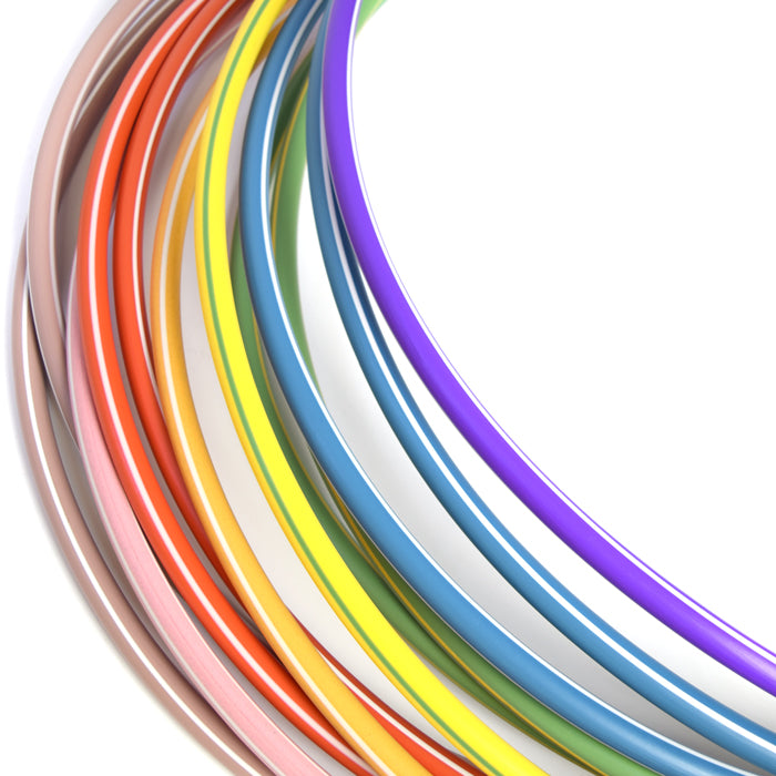 Arco bambolê de plástico (polietileno) Reises. Fabricado de mangueira plástica, reforçado por junção plástica. Produto infantil, indicado para recreação e aulas em escolas e clubes. Modelo seguro e econômico. Conjunto com 12 unidades de cores variadas. Disponível com 63 cm de diâmetro (pequeno, até 09 anos) e 75 cm de diâmetro (médio, acima de 09 anos). Com selo do Inmetro. 16mm de diâmetro.