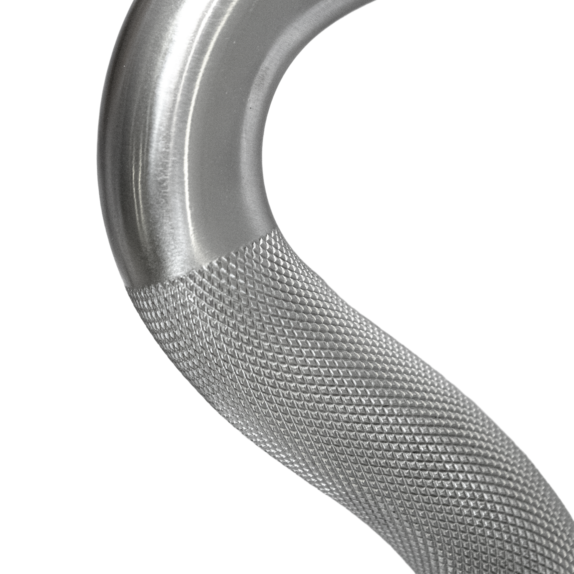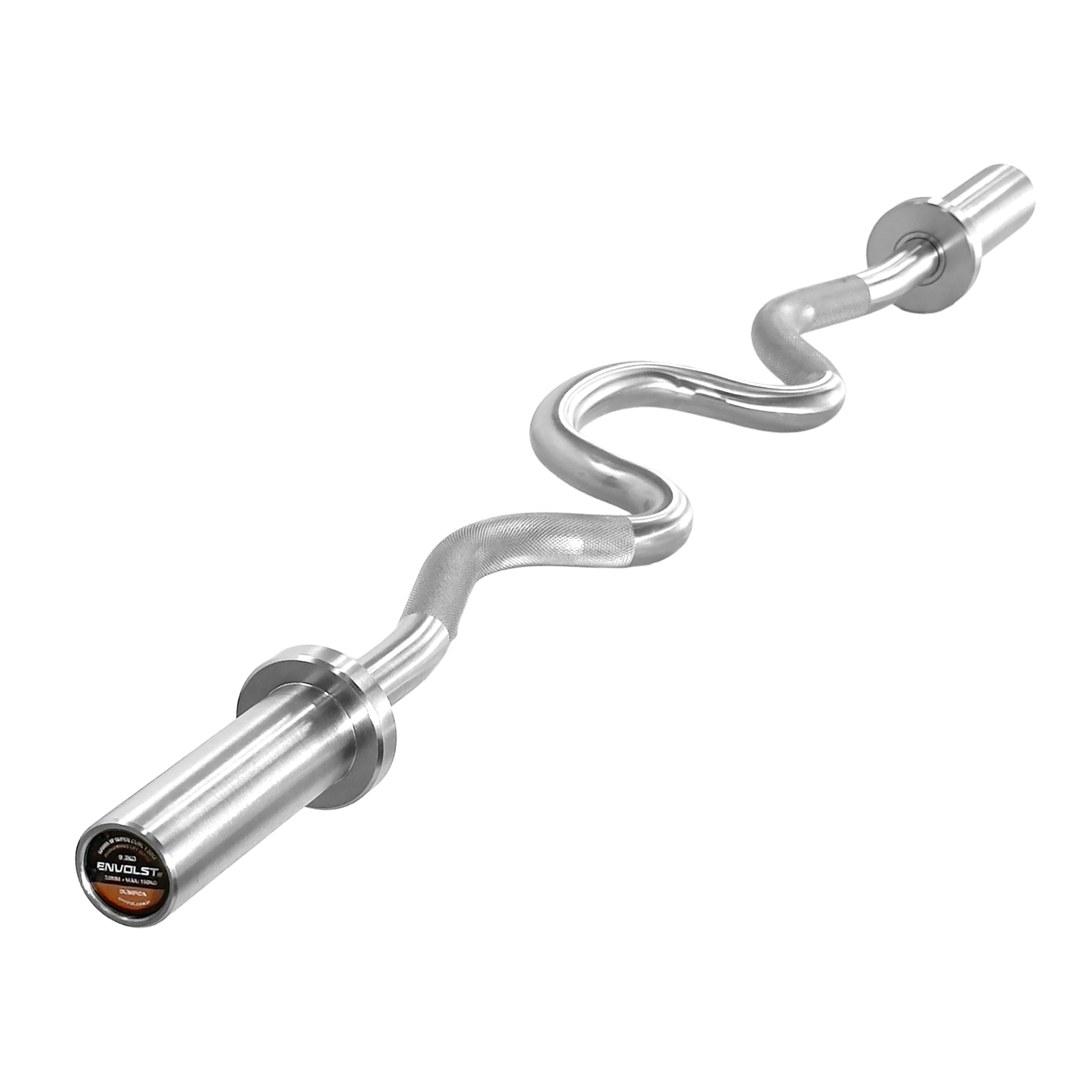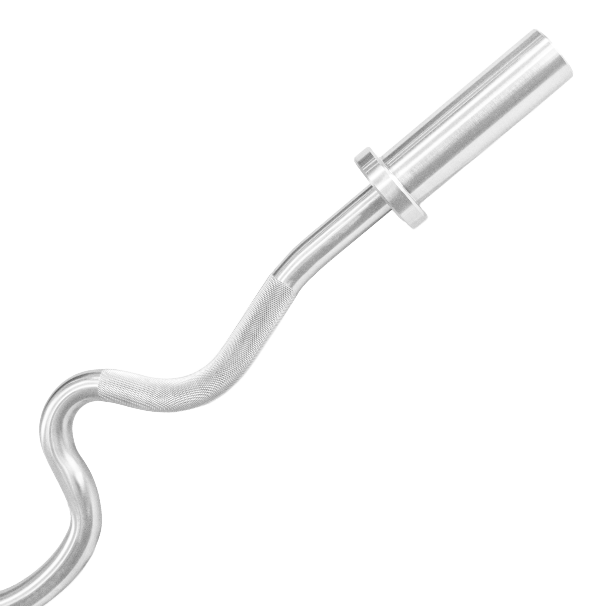 Desenvolvida para treinos de braços, com formato super curl que favorece pegadas naturais e reduz carga nos punhos. Estrutura em aço com acabamento hard chrome e pegada recartilhada de 28 mm. Mangas olímpicas de 50 mm, 16 cm úteis, compatíveis com anilhas 50 mm. Sistema de giro com rolamentos e buchas de cobre para rotação suave.
