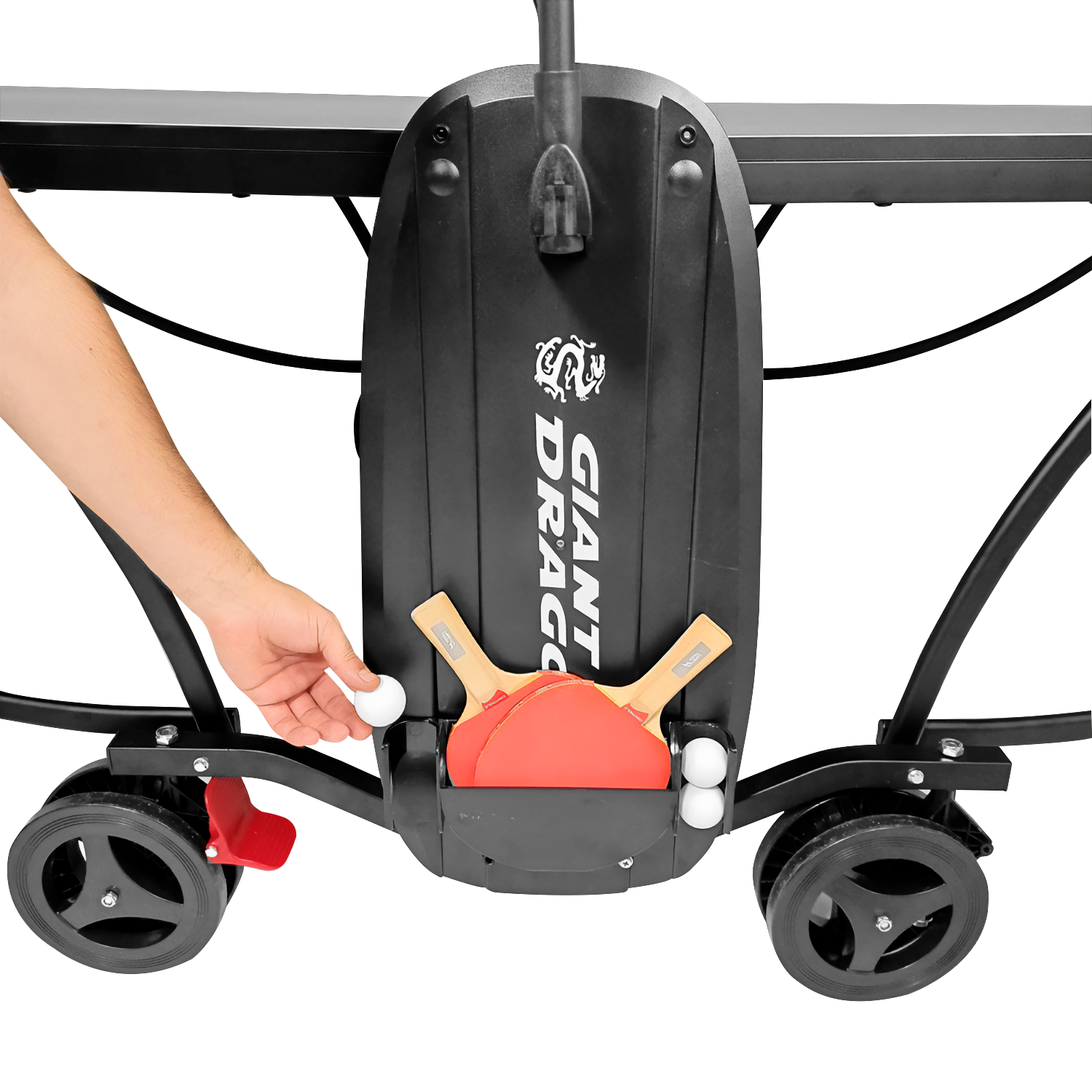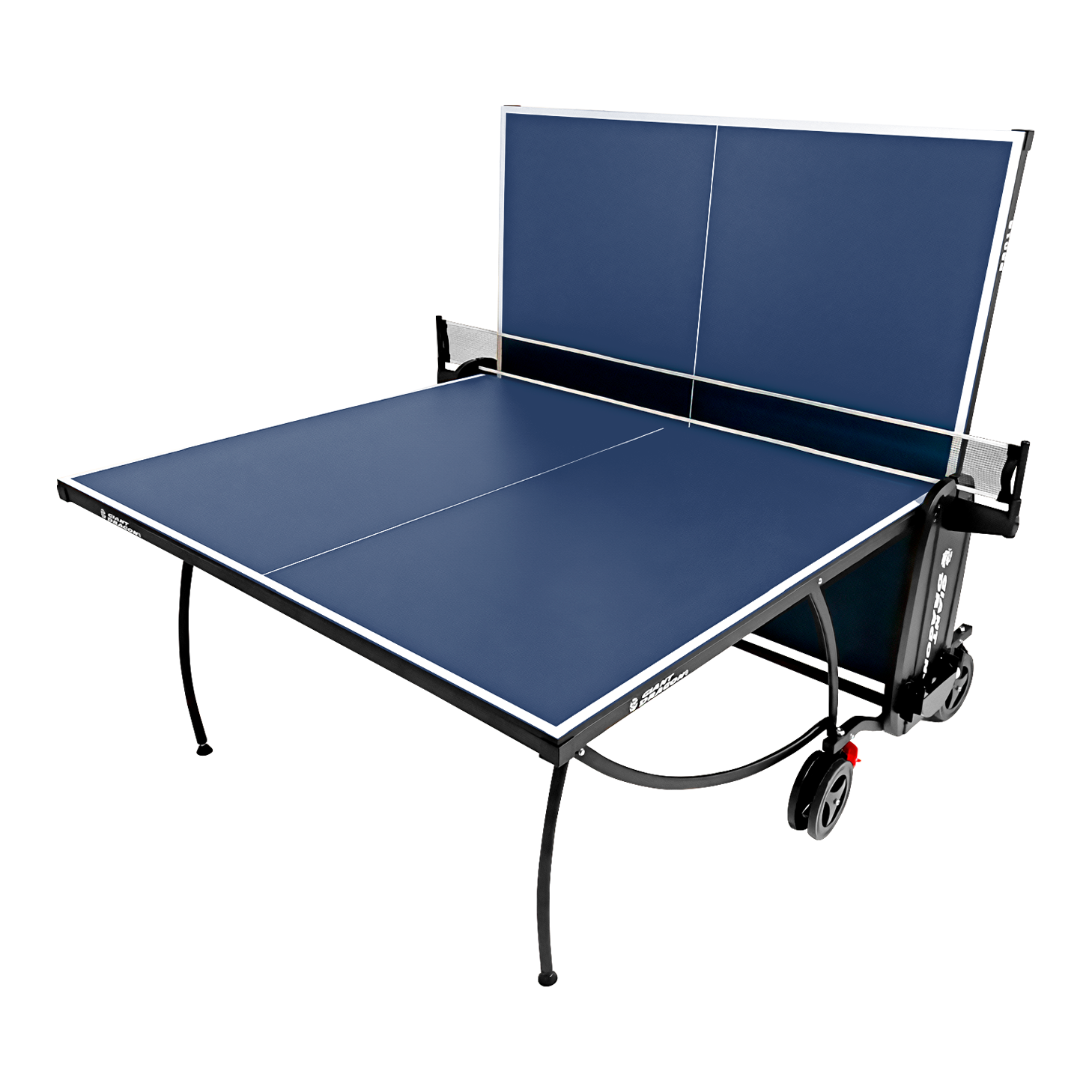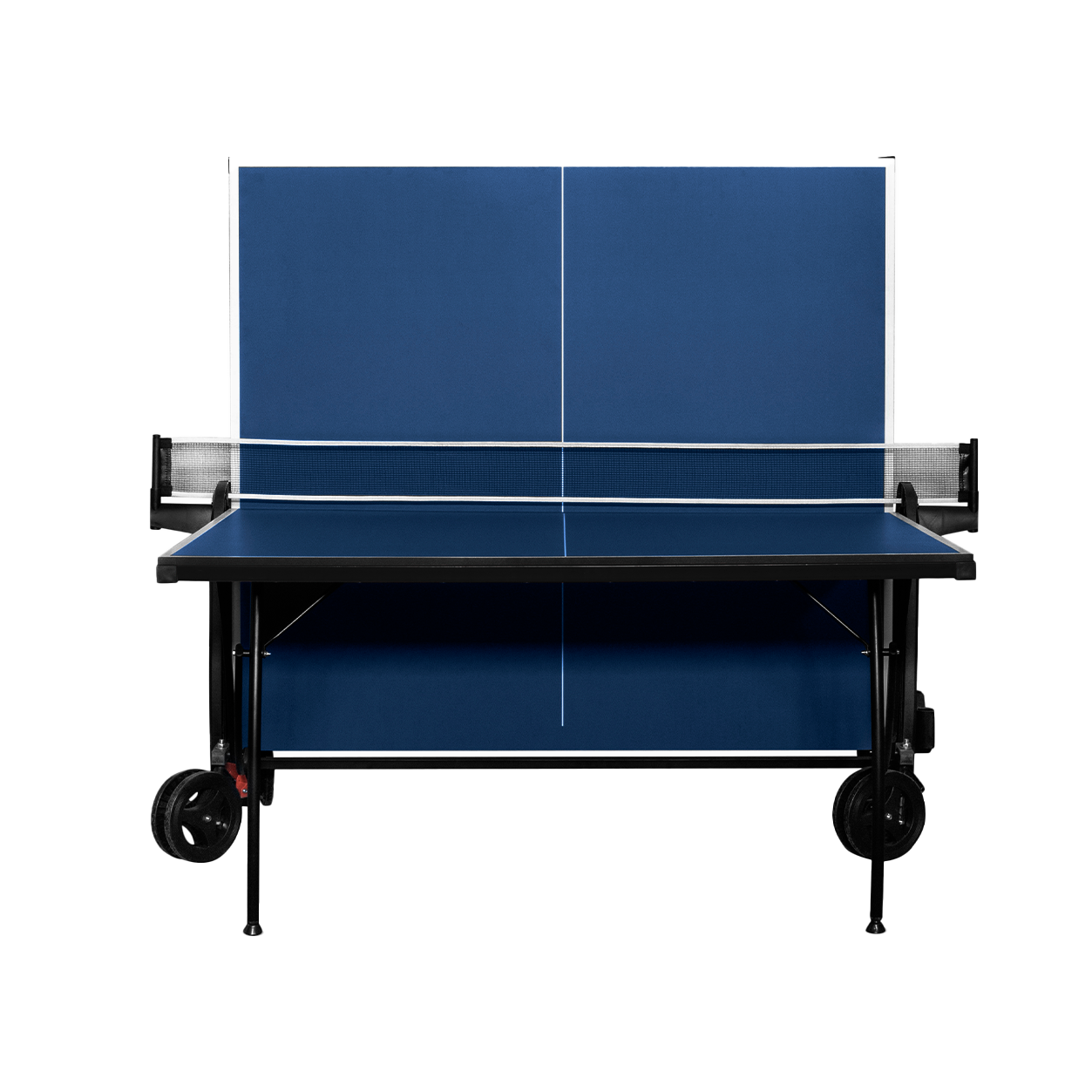 Pensada para treinos e partidas com medidas oficiais, traz tampo em MDF de 15mm com pintura antirreflexo para leitura clara do giro e do quique. Estrutura metálica dobrável com rodas duplas e travas facilita mover e guardar. Conta com modo paredão e ajuste de altura. Rede com suporte tipo jacaré e porta itens lateral para raquetes e bolas.