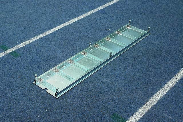 Tampa de aço inox de proteção para tábua de impulsão de treinamento de atletismo. Produto usado para cobrir o vão da tábua de impulsão quando ela não está sendo utilizada. Encaixa perfeitamente no requadro da tábua de impulsão para treinamento Polanik. Fabricada em aço inox. Superfície polida com pés ajustáveis para a instalação em pista sintética. Cobertura superior com nervuras para fácil colagem de borracha da pista.
