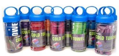 Toalha de treino refrescante Mbfit - Tubo com 1 toalha. A toalha de resfriamento é composta de 3 camadas de tecido de microfibras. Ao molhar ou secar o suor basta apenas espremê-la ou sacudir-la por alguns segundos que ela rapidamente ficará seca. Ao colocar no corpo sentirá o frescor da sua tecnologia de resfriamento instantâneo. Esta toalha desenvolvida com alta tecnologia irá lhe proporcionar muito mais conforto enquanto estiver praticando qualquer tipo de esporte. Resfriamento rápido. Basta imergir em água e torcer a toalha. O efeito de resfriamento pode durar horas. Tamanho perfeito para utilizar como toalha, cachecol, faixa e bandana enquanto pratica o esporte. É do tamanho perfeito para envolver o pescoço ou a cabeça. É perfeito para se livrar de ondas de calor e para praticar atividades ao ar livre ou exercícios internos. Pode ser utilizada para alívio de febre ou dor de cabeça. Serve para prevenção de insolação, auxiliando na refrigeração do corpo. Material: Neoprene respiravél. Tamanho 29X88 cm. Preço unitário.